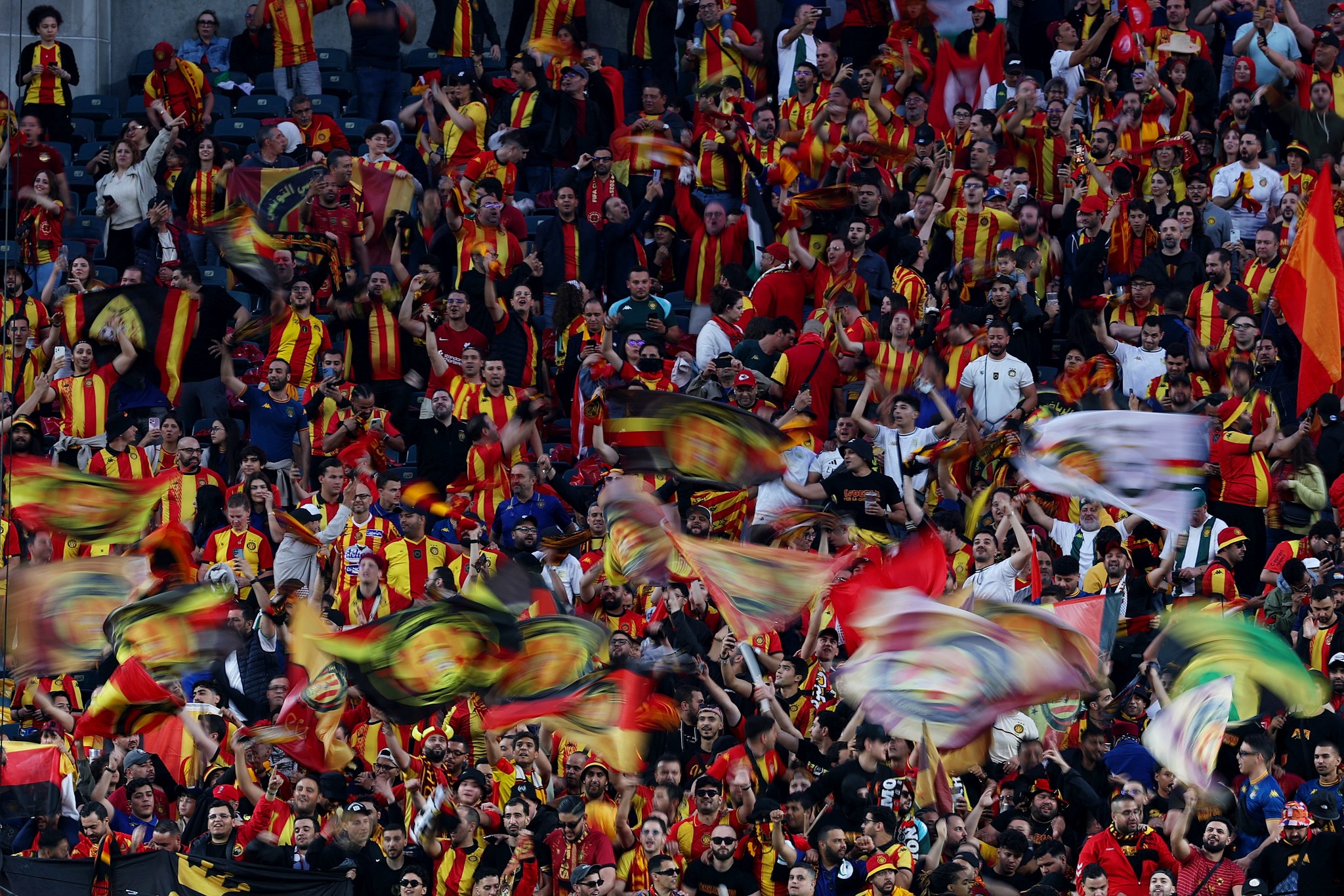 PHILADELPHIA, PENNSYLVANIA - JUNE 16: Fans of Esperance De Tunisie react as they enjoy the pre match atmosphere prior to the FIFA Club World Cup 2025 group D match between CR Flamengo and Esperance de Tunis at Lincoln Financial Field on June 16, 2025 in Philadelphia, Pennsylvania. (Photo by Al Bello/Getty Images)
